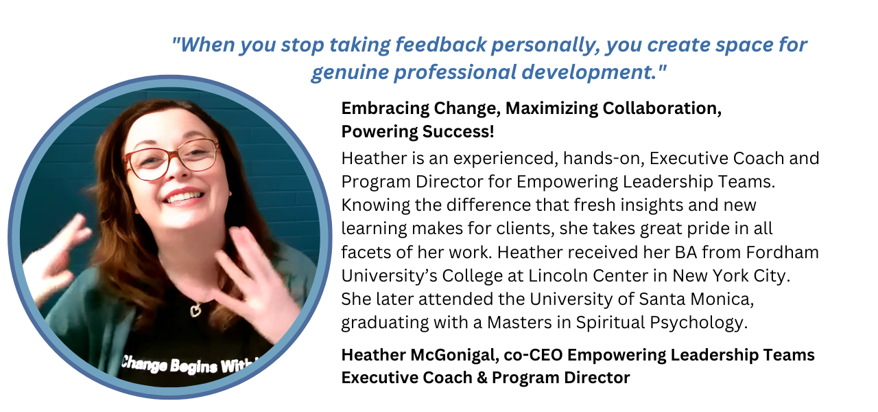 As a leader, your relationship with feedback sets the tone for your entire team. Schedule a complimentary Coffee Chat with Coach Heather to explore how taking feedback professionally can create psychological safety and drive performance across your organization.