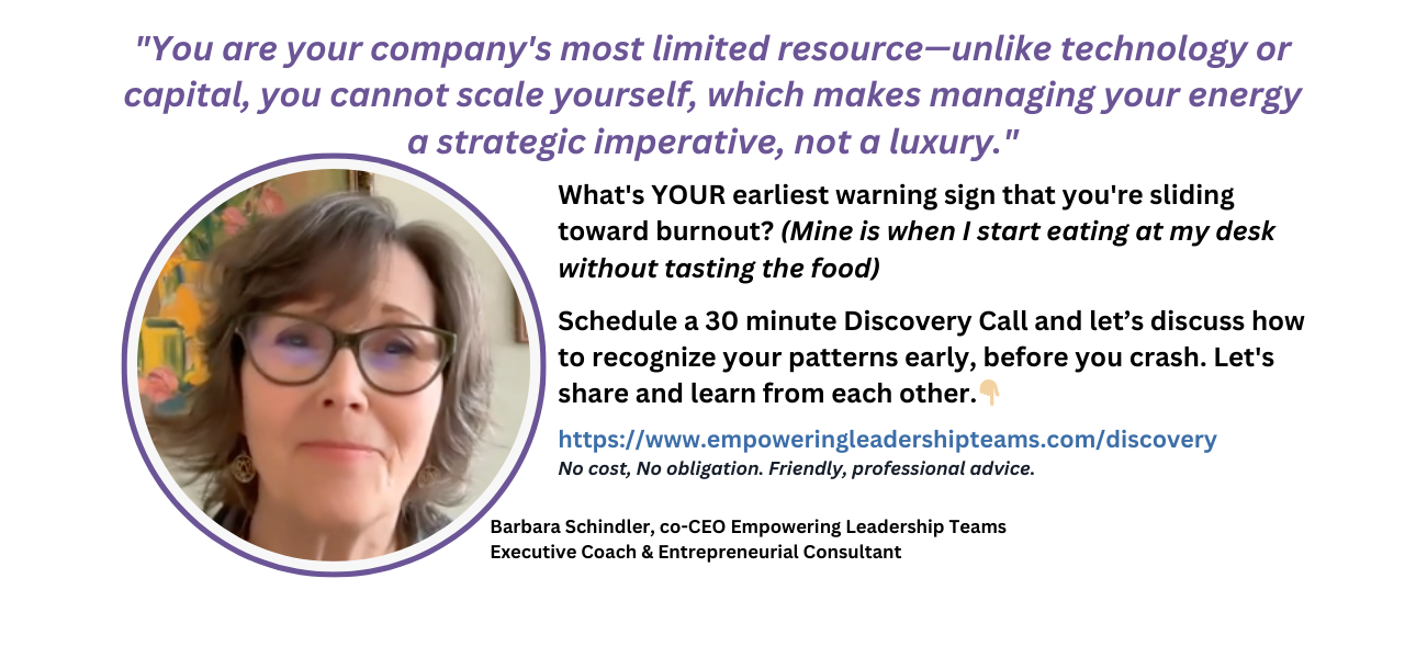 The most successful entrepreneurial leaders I work with aren't the ones who work the longest hours or sacrifice the most. They're the ones who have figured out how to sustain their energy, clarity, and presence over the long term.